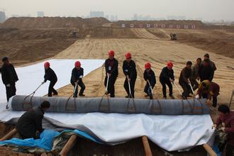 施工簡便:產(chǎn)品幅寬可達6米,長度最長可達40米,大大提高了施工效率。施工時只需將ST-GCL防水毯平鋪在地上。立面或斜面施工時,用釘子和墊圈將其固定,并按要求搭接即可;不受施工環(huán)境溫度的限制,0℃以下也可施工。